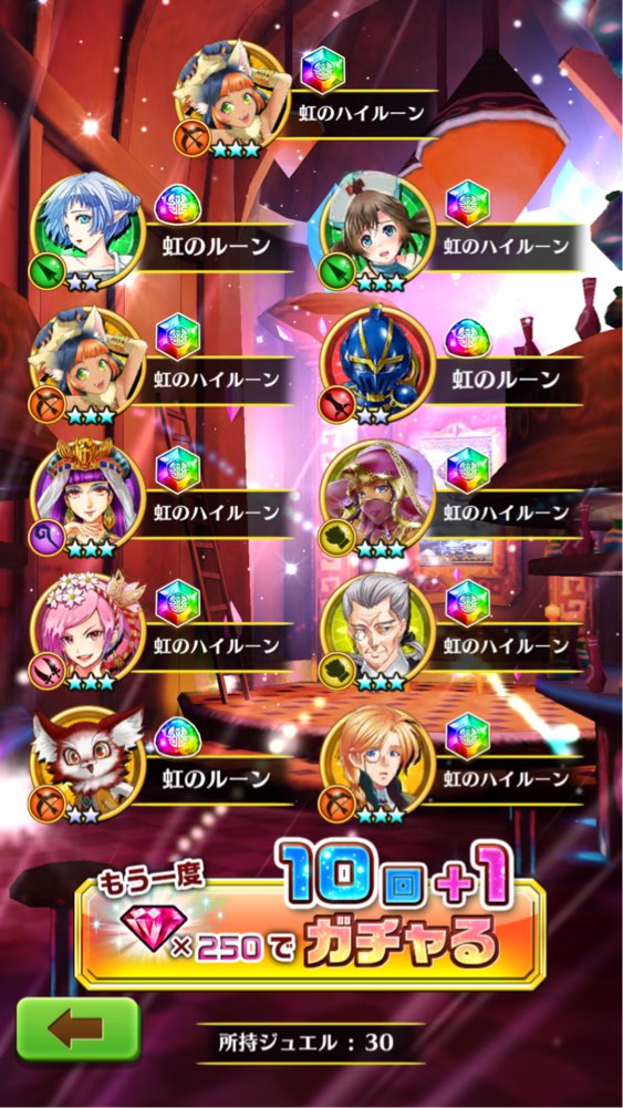 ちなみに、今日の11連ガチャは☆3以下だけでした…